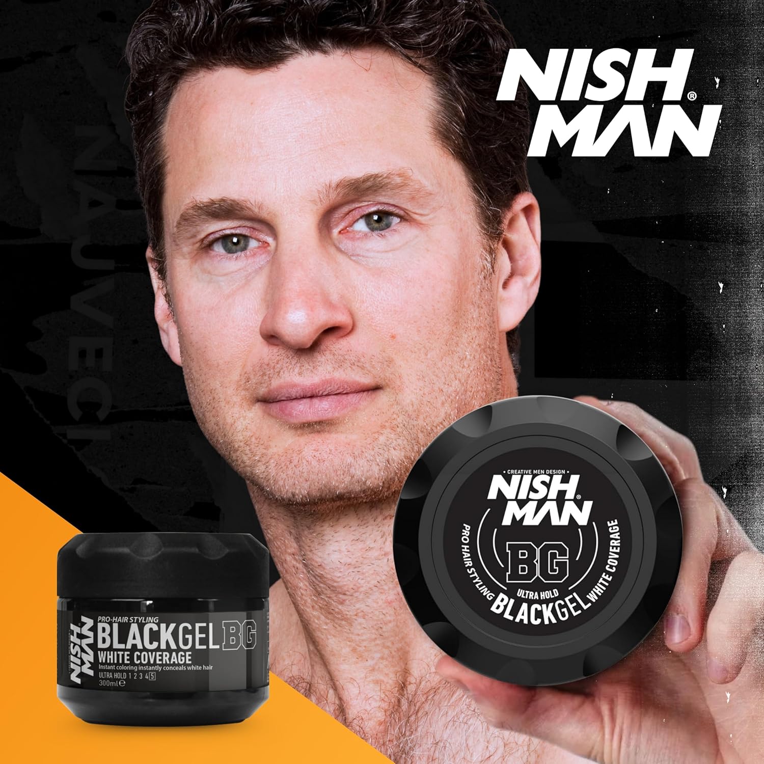 Transform your look in a flash with Nish Man Black Gel, a playful solution for covering those sneaky first gray hairs. This magical gel instantly imparts a rich black color, giving your hair volume and a strong, long-lasting hold. Style it wet for a tousled vibe or apply quickly for a sleek finish. Plus, it's super easy to comb out when you're ready for a change!