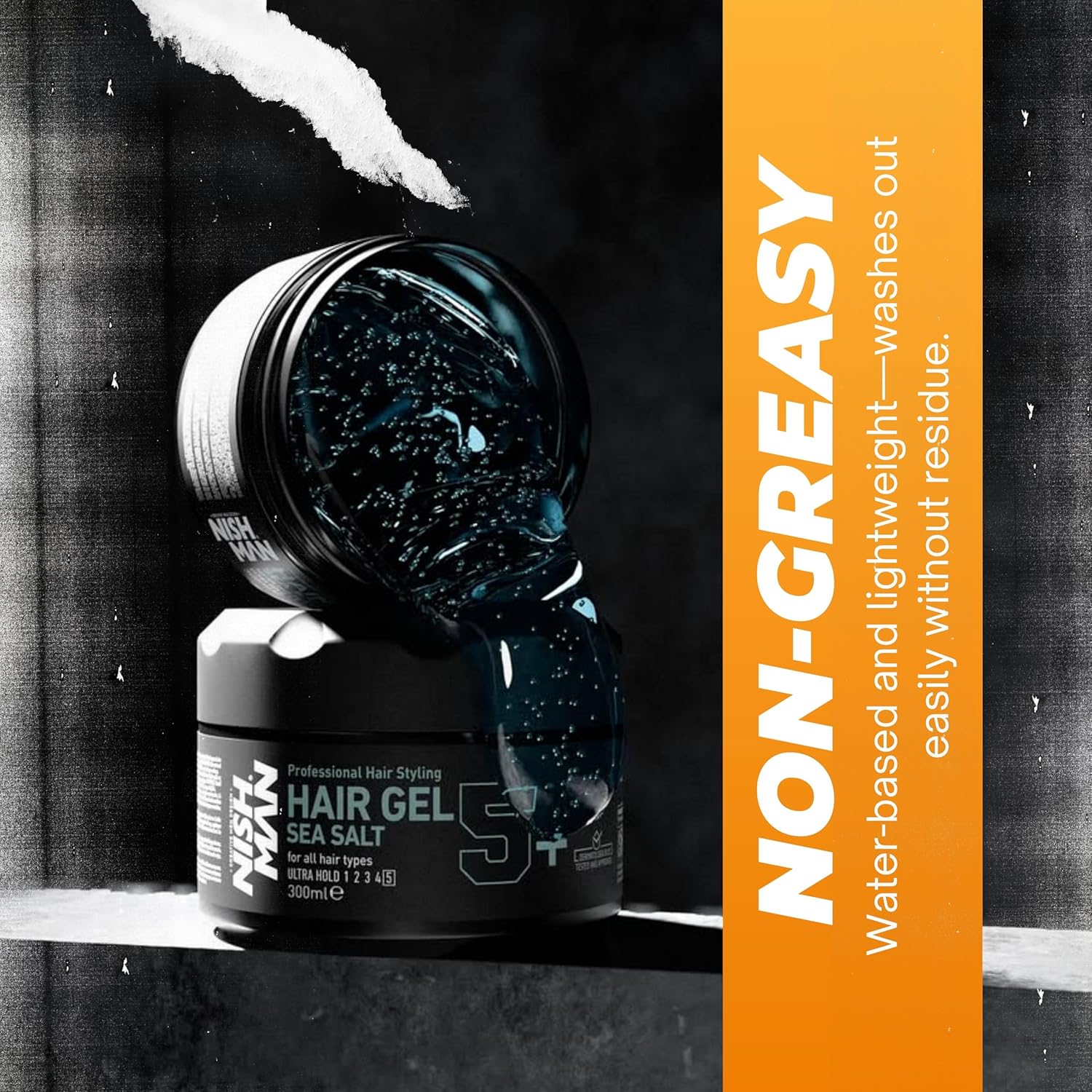 Unleash your inner beach bum with Nish Man 5+ Sea Salt Hair Gel, crafting effortlessly natural waves and enviable texture. This magical formula delivers impressive volume and flexible hold, ensuring your hair stays perfectly styled without feeling stiff or sticky. Enjoy a lightweight, non-greasy finish that's a breeze to wash out, leaving no residue behind. Suitable for all hair types, it's your secret weapon for a casual, sea-inspired look that lasts all day.