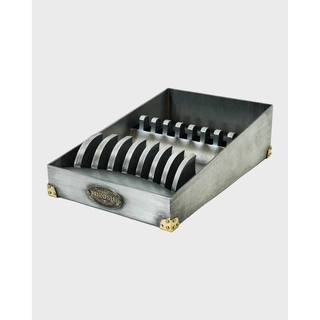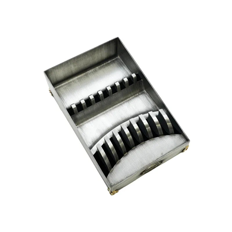 Den rymmer upp till nio par saxar, med extra utrymme för andra små verktyg eller tillbehör.
