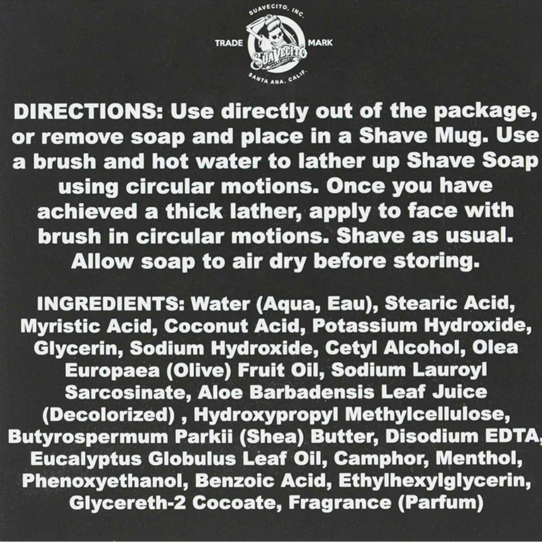Unleash your inner dapper with Suavecito's Whiskey Bar Shave Soap. This premium soap whips up a rich, creamy lather for an incredibly smooth, effortless shave. Infused with natural wonders like Aloe Vera and Shea Butter, it pampers your skin, leaving it feeling fresh and revitalized. Elevate your grooming game with this delightful essential.